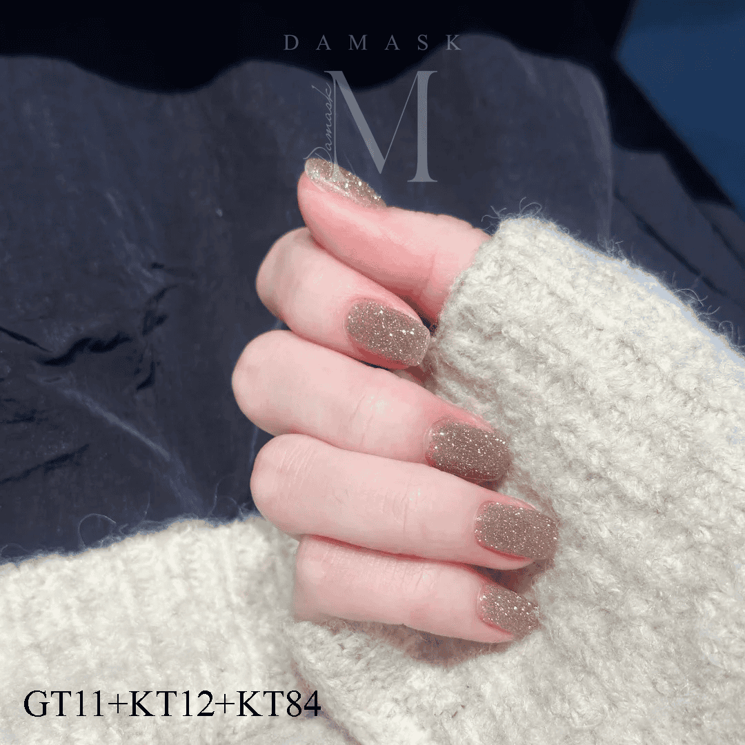 Lớp cuối cùng là KT84 kim tuyến dạ ánh vàng – kim tuyến mịn, bắt sáng mạnh nhưng không thô, tạo hiệu ứng blink lấp lánh hết nấc, nhìn nghiêng hay dưới ánh đèn đều cực kỳ nổi bật.