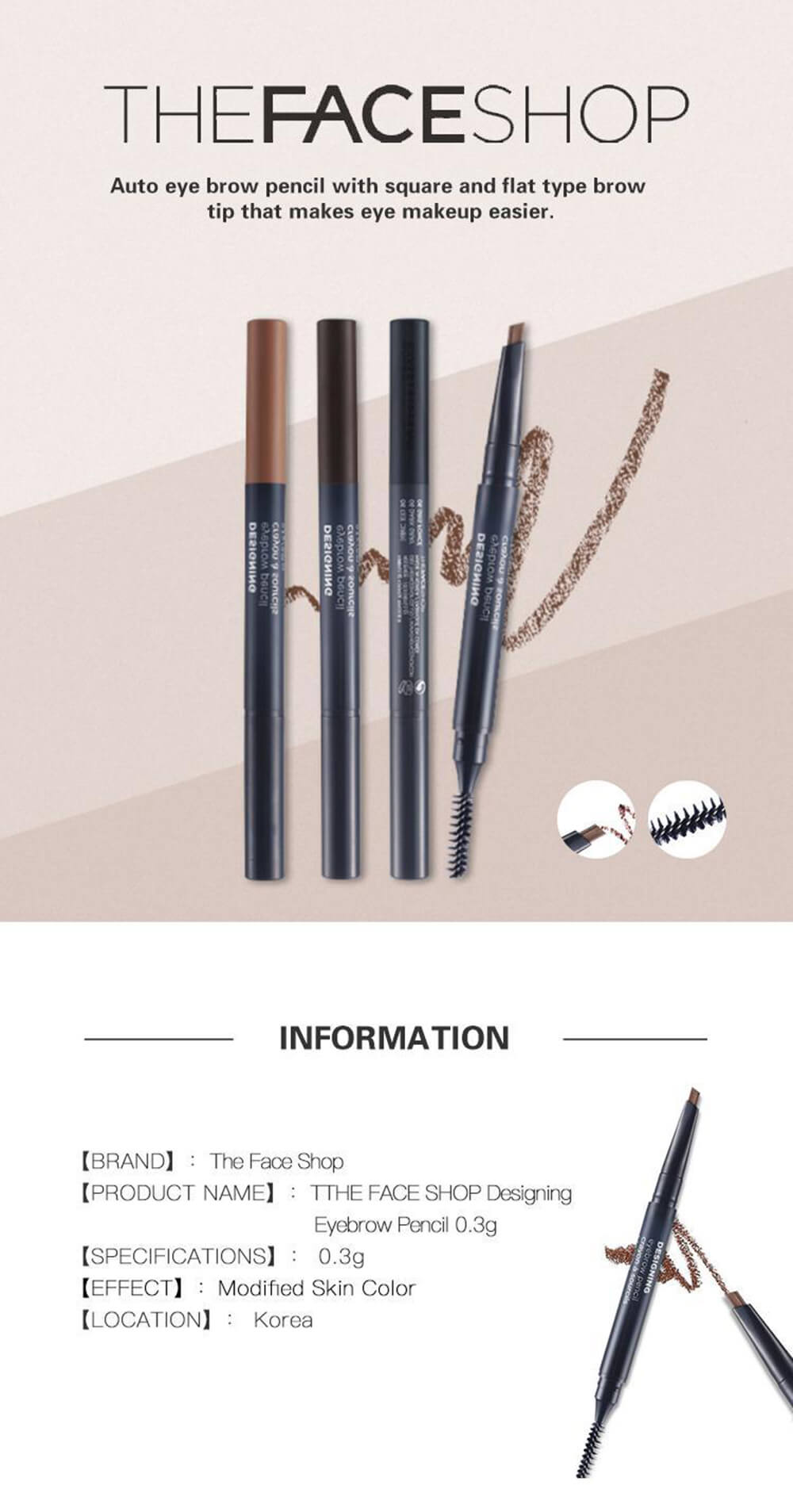 Chì Kẻ Mày 2 Đầu The Face Shop Designing Eyebrow Pencil là sản phẩm chì kẻ và tạo dáng chân mày 2 đầu tiện dụng, gồm 1 đầu là chì kẻ mày, 1 đầu là cọ chải lông mày mang lại đôi chân mày sắc sảo, độ bám màu cao.