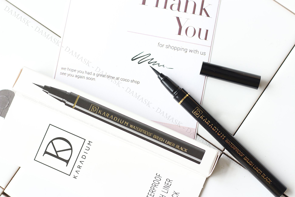 Em Brush Liner nhà Karadium với đầu cọ mảnh giúp đường kẻ chuẩn và sắc nét từng chi tiết mang lại ánh nhìn tự nhiên cho đôi mắt