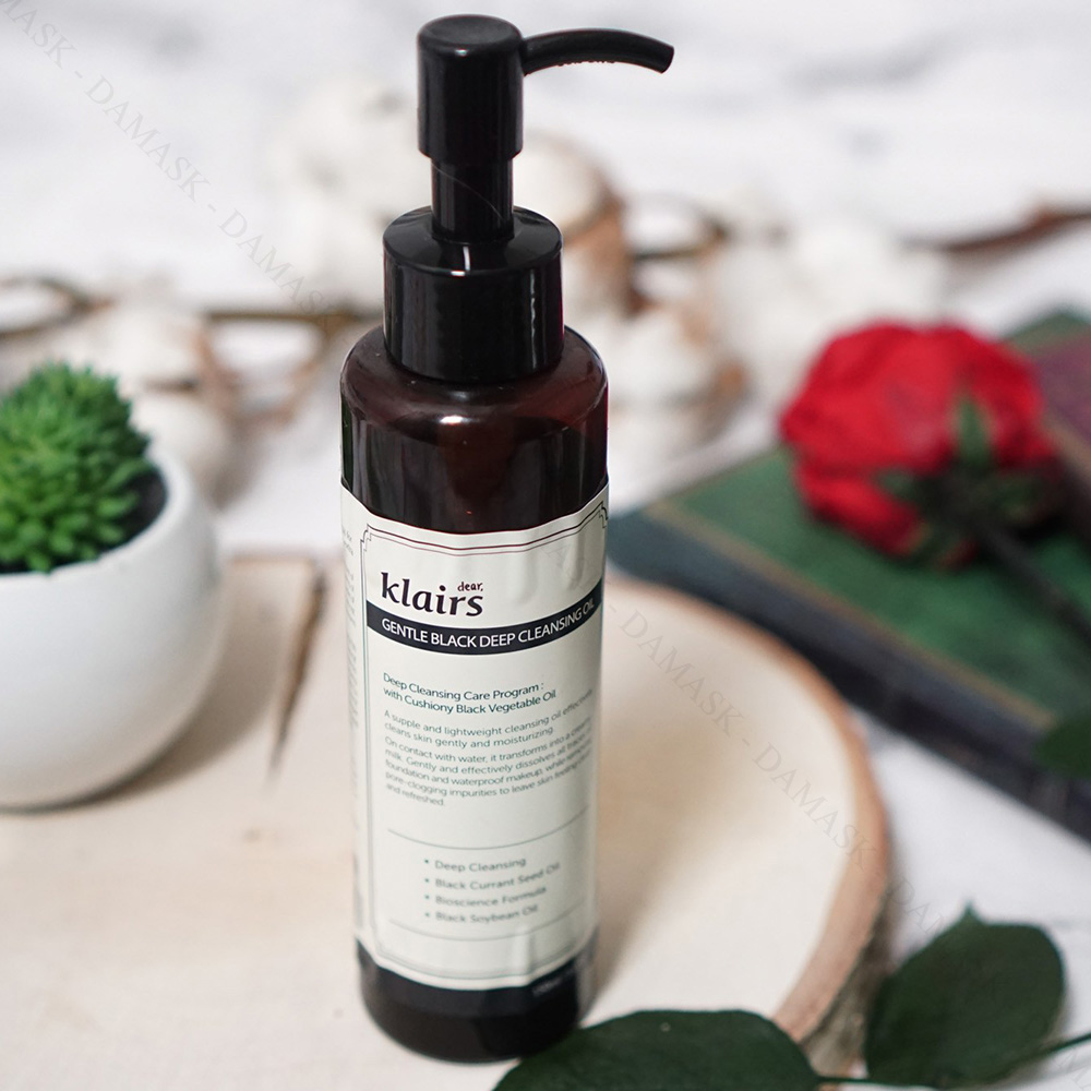 Dầu tẩy trang Dear Klairs Gentle Black Deep Cleansing Oil giúp làm sạch các lớp trang điểm trên da, kiểm soát sản xuất bã nhờn và cung cấp dinh dưỡng cho làn da, ngăn chặn tình trạng mất nước và lão hóa, cung cấp các hiệu ứng chất chống oxy hóa mạnh mẽ cho da. Chất dầu không quá lỏng, gần như trong suốt và có mùi dược liệu hơi giống mùi gừng. Sản phẩm có khả năng tẩy sạch được lớp trang điểm bao gồm kem, phấn, các loại mascara chống thấm nước và một số loại son