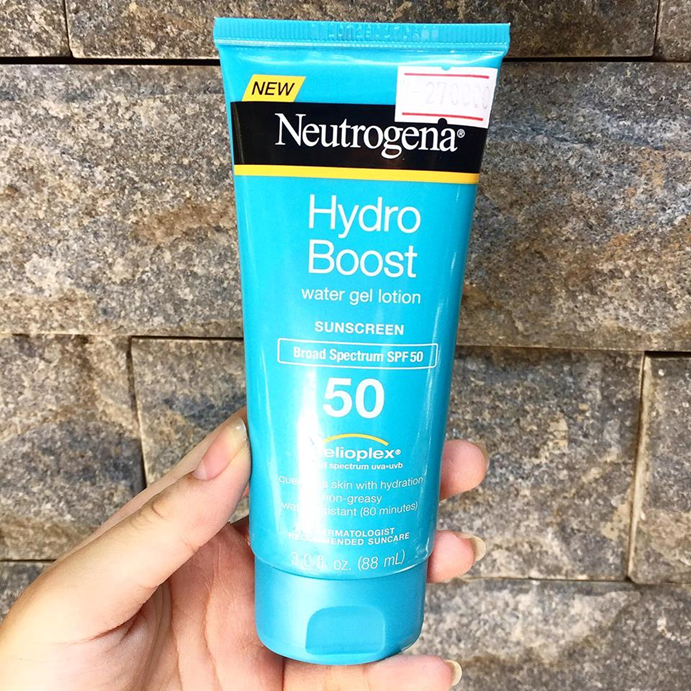 Kem chống nắng Neutrogena® Hydro BoostSPF 50 giúp làn da trông khỏe mạnh và giữ ẩm trong tối đa tám giờ.