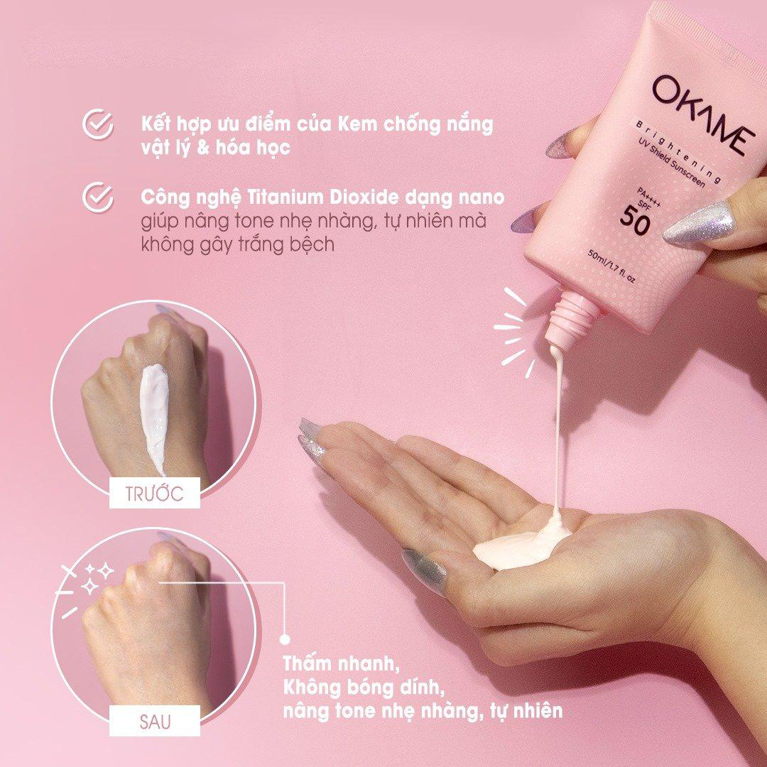 Công dụng chính của kem chống nắng Okame Brightening UV Shield Sunscreen SPF 50 PA++++