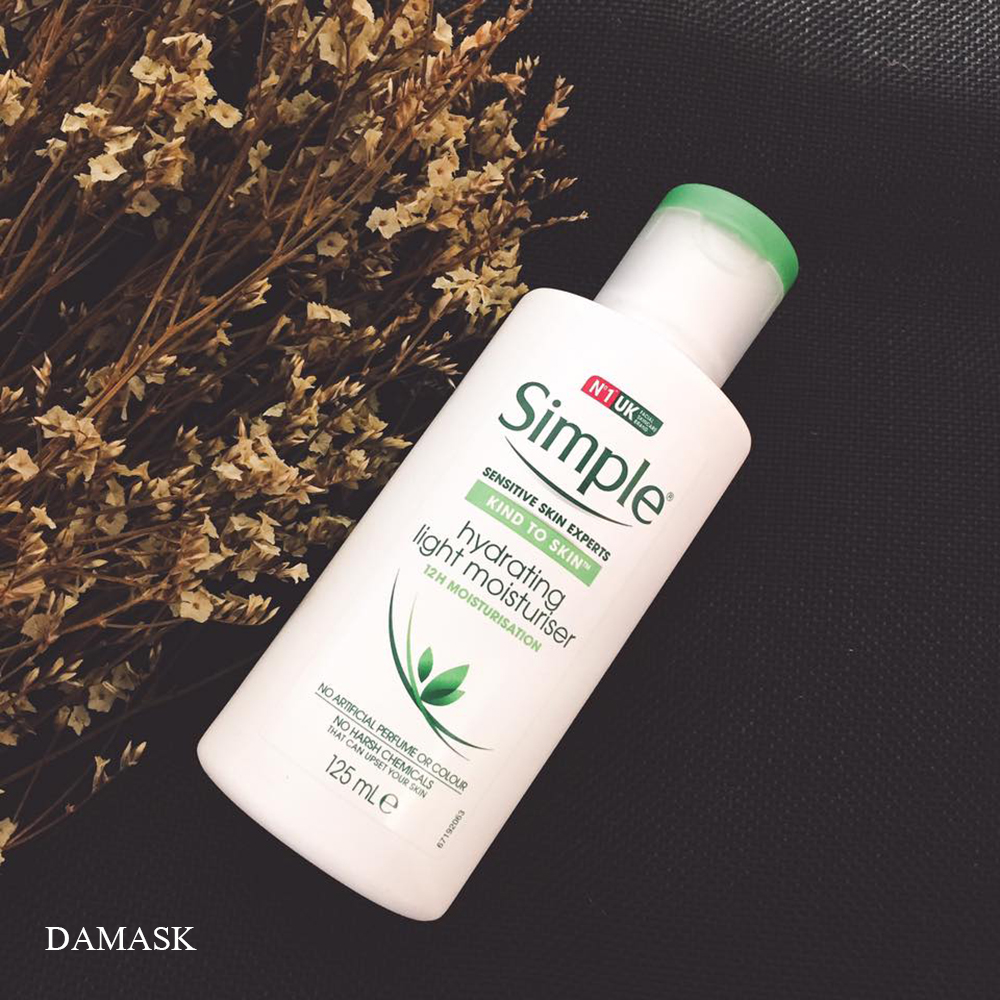 Dòng kem dưỡng Simple Kind To Skin Hydrating Light Moisturiser là dòng kem dưỡng nổi tiếng của hãng Simple Skincare (một hãng chuyên sản xuất những dòng sản phẩm chăm sóc da mặt). Đây là Sản phẩm kem dưỡng ẩm dành cho da hỗn hợp đến da dầu, dùng được cho da nhạy cảm, được bổ sung 2 loại Vitamin rất quen thuộc là Vitamin B5 và Vitamin E cùng với 2 thành phần yêu thích của làn da là Glycerin và Borage Seed Oil.