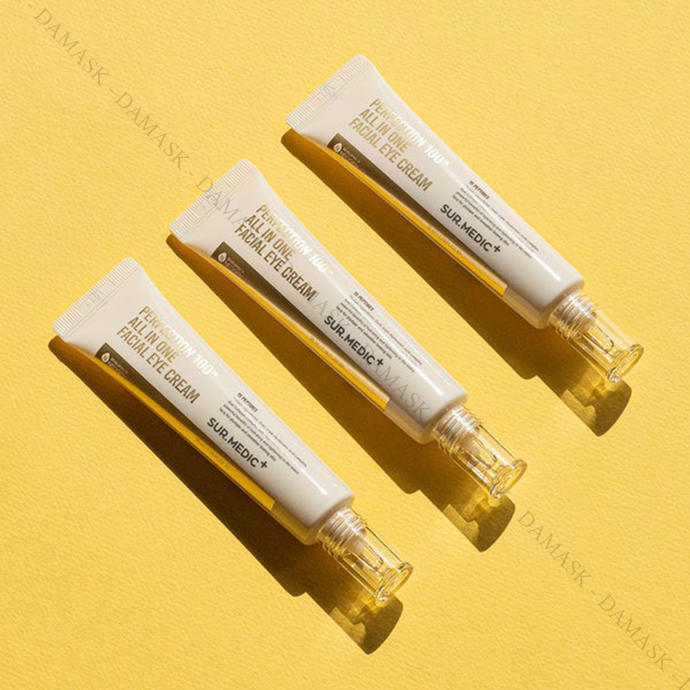 - Kem Dưỡng Chống Lão Hóa Cải Thiện Nếp Nhăn Vùng Mắt Sur.Medic Perfection 100™ All In One Facial Eye Cream chứa thành phần tinh chất vàng tinh khiết có đặc tính hydrat hóa, làm săn chắc và giữ ẩm cho vùng da, giúp giảm nếp nhăn, trẻ hóa vùng da lão hóa một cách tự nhiên. Đồng thời giữ cho da săn chắc bằng cách duy trì collagen trong da và ngăn chặn hình thành sắc tố Melanin giúp vùng da mắt trở nên sáng mịn tự nhiên