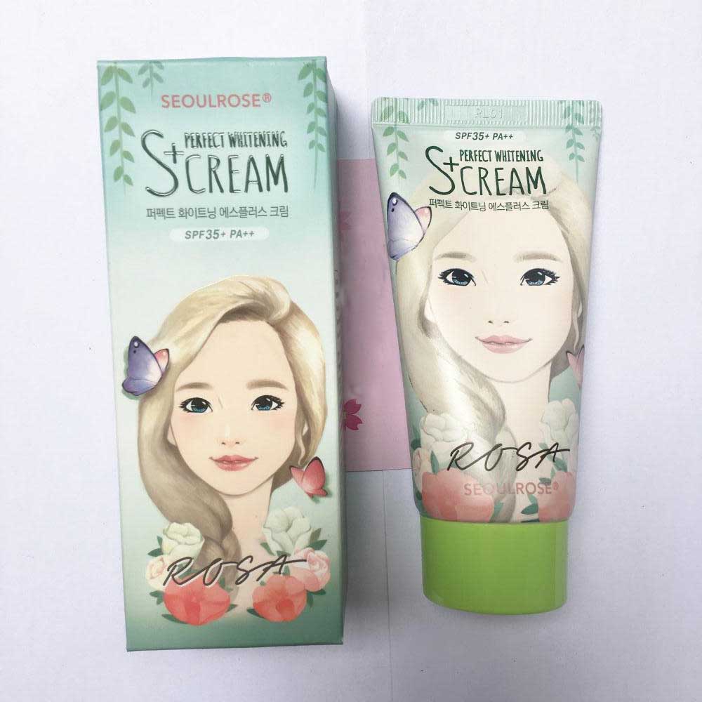 Không chỉ là một sản phẩm làm trắng da, kem dưỡng Rosa còn là một sản phẩm chống nắng cực hiệu quả, đồng thời bổ sung nhiều các loại dưỡng chất, vitamin cần thiết cho da Dòng sản phẩm Rosa Perfect Whitening S+ Cream có chỉ số chống nắng SPF35+PA++ bên cạnh chức năng chống nắng thì nó còn làm trắng và cải thiện nếp nhăn, giúp da căng bóng Kem dưỡng trắng da Rosa còn giúp da chống kích thích từ bên ngoài và chống nhiễm khuẩn, cải thiện nếp nhăn và ngăn ngừa lão hóa Kem dưỡng Rosa có thiết kế vỏ hộp vô cùng trẻ trung hình cô gái và với 2 màu chủ đạo là trắng và xanh dương giúp đem lại cảm giác nhẹ nhàng và thanh mát, không cầu kỳ mà cực bắt mắt Rosa là kem dưỡng trắng da dạng cream, chất kem màu trắng ngà đem lại cảm giác sạch sẽ với mùi hương tự nhiên rất dễ chịu và nhẹ nhàng mang lại cho bạn sự thoải mái.