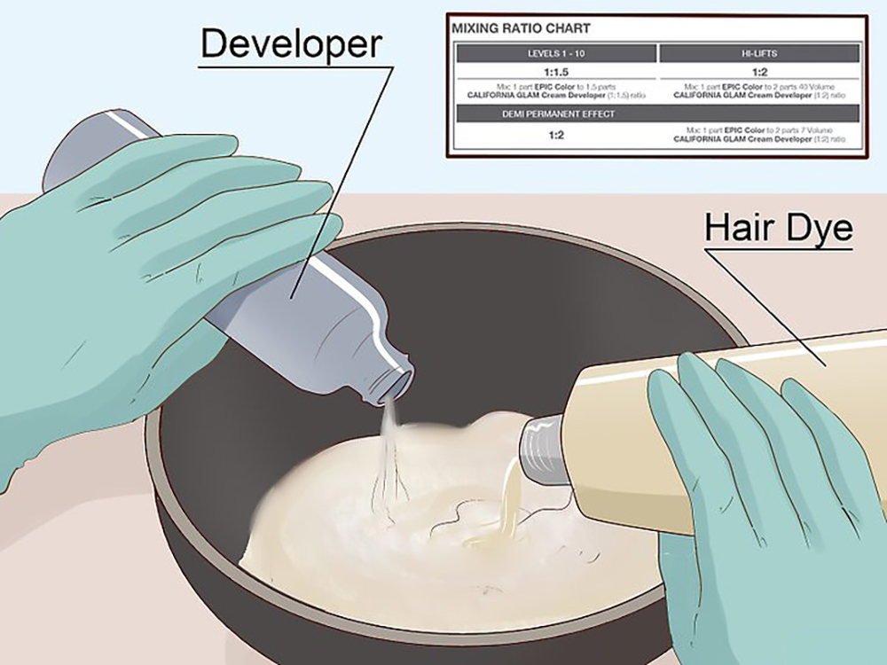 Bằng cách kết hợp màu nhuộm với kem trợ nhuộm, bạn đã tiến gần hơn đến việc tạo ra một màu tóc mới. Bên cạnh đó, việc chuẩn bị bát, dụng cụ khuấy và bao tay phù hợp là chìa khóa giúp bạn giữ cho quá trình pha thuốc nhuộm tóc luôn sạch sẽ và gọn gàng. Khi khuấy màu nhuộm và kem trợ nhuộm, bạn cần dùng tỷ lệ phù hợp và khuấy cho hỗn hợp thật mịn. Bạn cũng có thể kết hợp hai màu khác nhau để tạo ra thuốc nhuộm tóc với tông màu hoàn toàn mới!