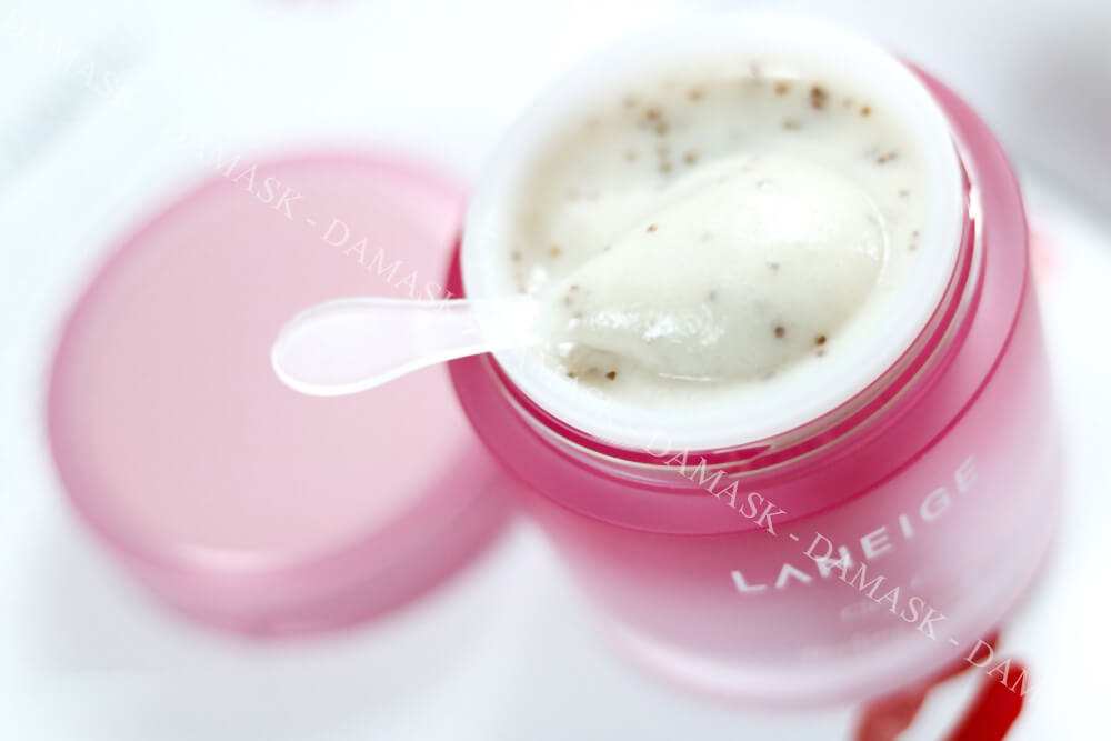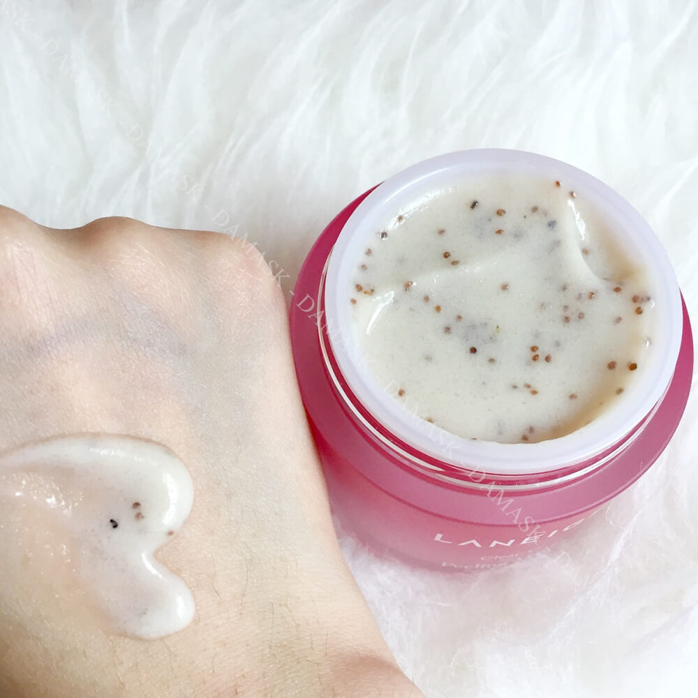 Tuy là mặt nạ tẩy tế bào chết nhưng sản phẩm lại không gây cảm giác khô ráp sau khi sử dụng như các loại mặt nạ khác. Da trở nên sáng và mềm mượt hơn sau khi sử dụng. Đặc biệt các hạt scrub được làm hoàn toàn từ hạt của các loại trái mọng nên rất an toàn cho da. Hàm lượng vitamin C trong Mặt nạ tẩy tế bào chết Laneige chiếm tới 92.5% thành phần gồm những loại quả chứa hàm lượng vitamin C cao nhất, một trong những thành phần đó chính là quả sơ ri có khả năng chống oxy hóa cao gấp 65 lần so với cam và chanh.