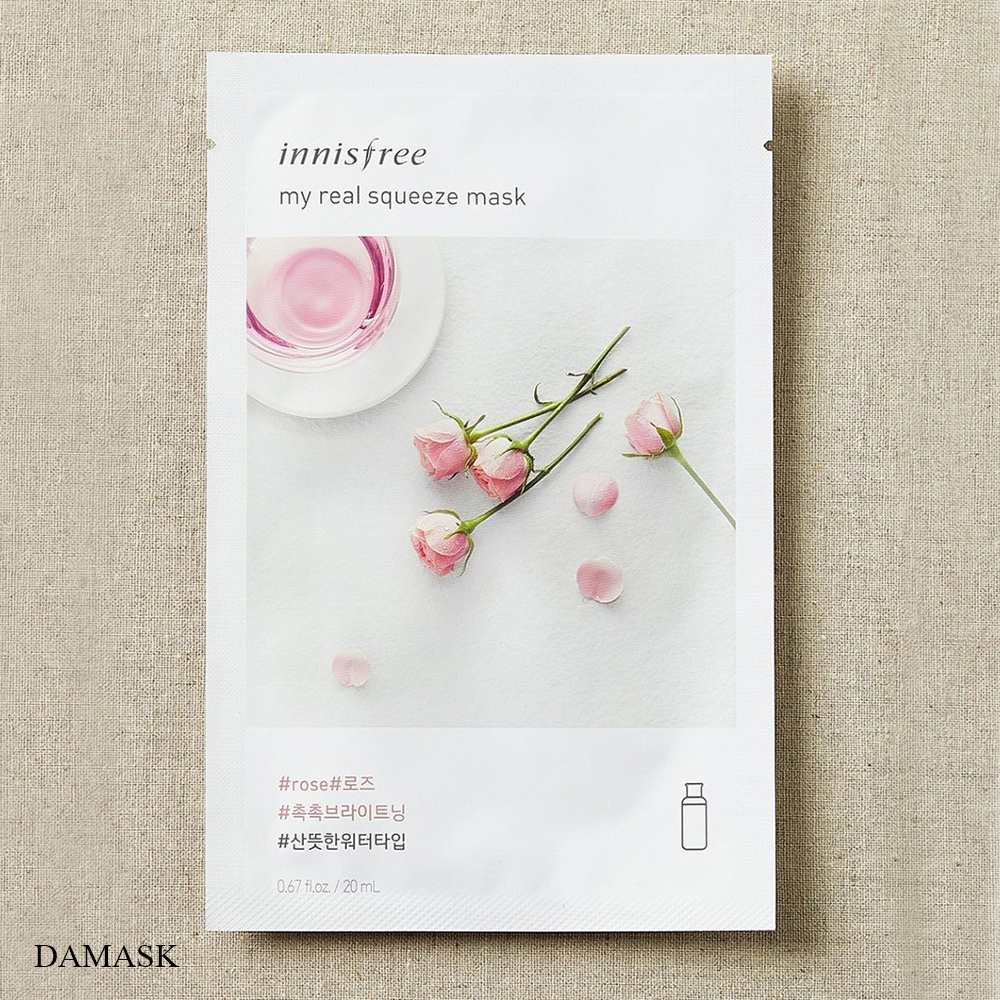 Innisfree My Real Squeeze Mask là mặt nạ giấy với 18 loại khác nhau từ các nguyên liệu từ tự nhiên, cung cấp độ ẩm theo nhu cầu dưỡng da của bạn.