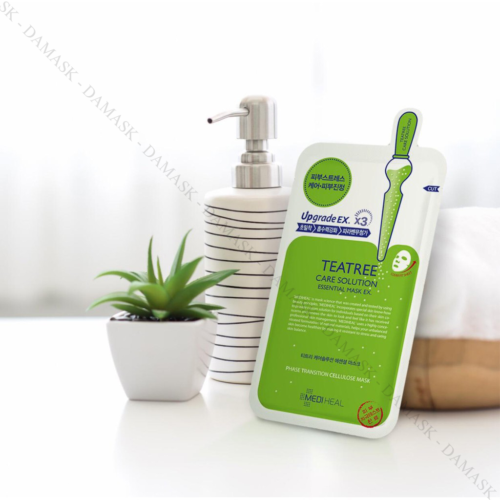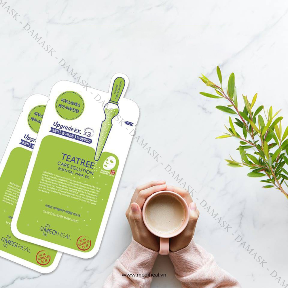 - Với những thành phần kháng viêm, kháng khuẩn cho da, mặt nạ Mediheal Teatree Care Solution Essential Mask EX có tác dụng hiệu quả trong việc kháng viêm, ngừa mụn cho da