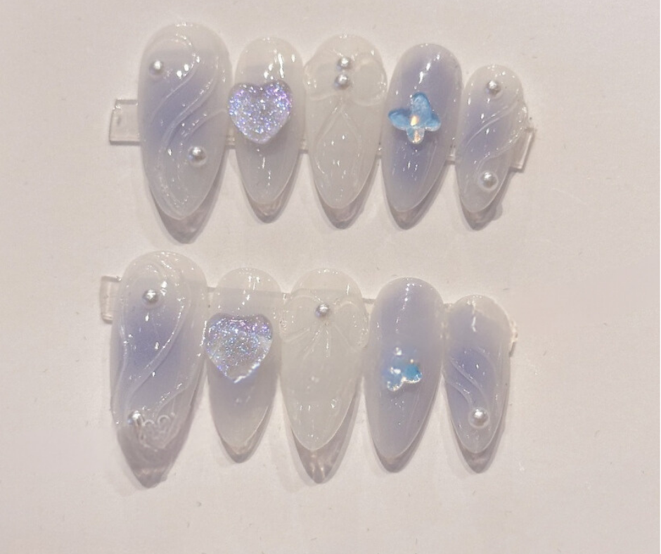 Bộ sản phẩm bao gồm: 10 ngón nails giả đính đá thiết kế phù hợp với mọi kích thước tay.