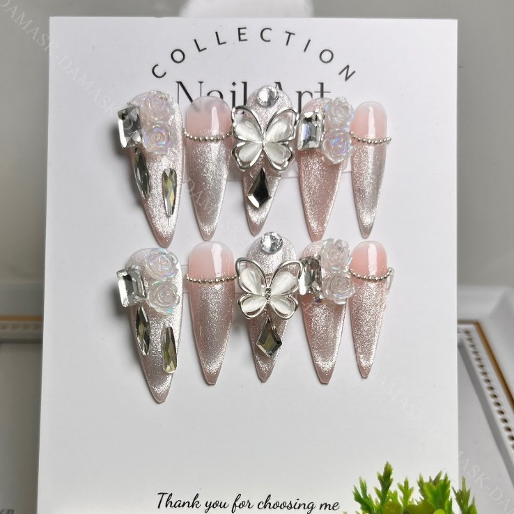 THÔNG TIN SẢN PHẨM Thương Hiệu: DAMASK Chất liệu: Nhựa cao cấp. Số đo: XS - S - M - L    GIỚI THIỆU SẢN PHẨM Bộ sản phẩm bao gồm: 10 ngón nails giả đính đá thiết kế phù hợp với mọi kích thước tay. Quà...