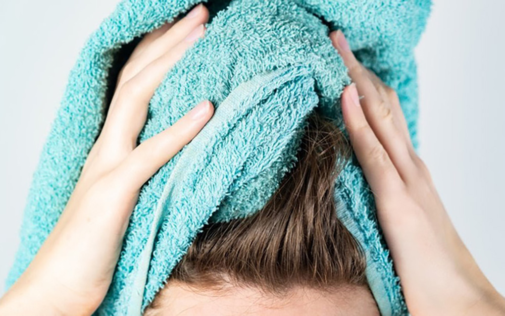 Bạn dùng khăn bông để lau tóc ướt