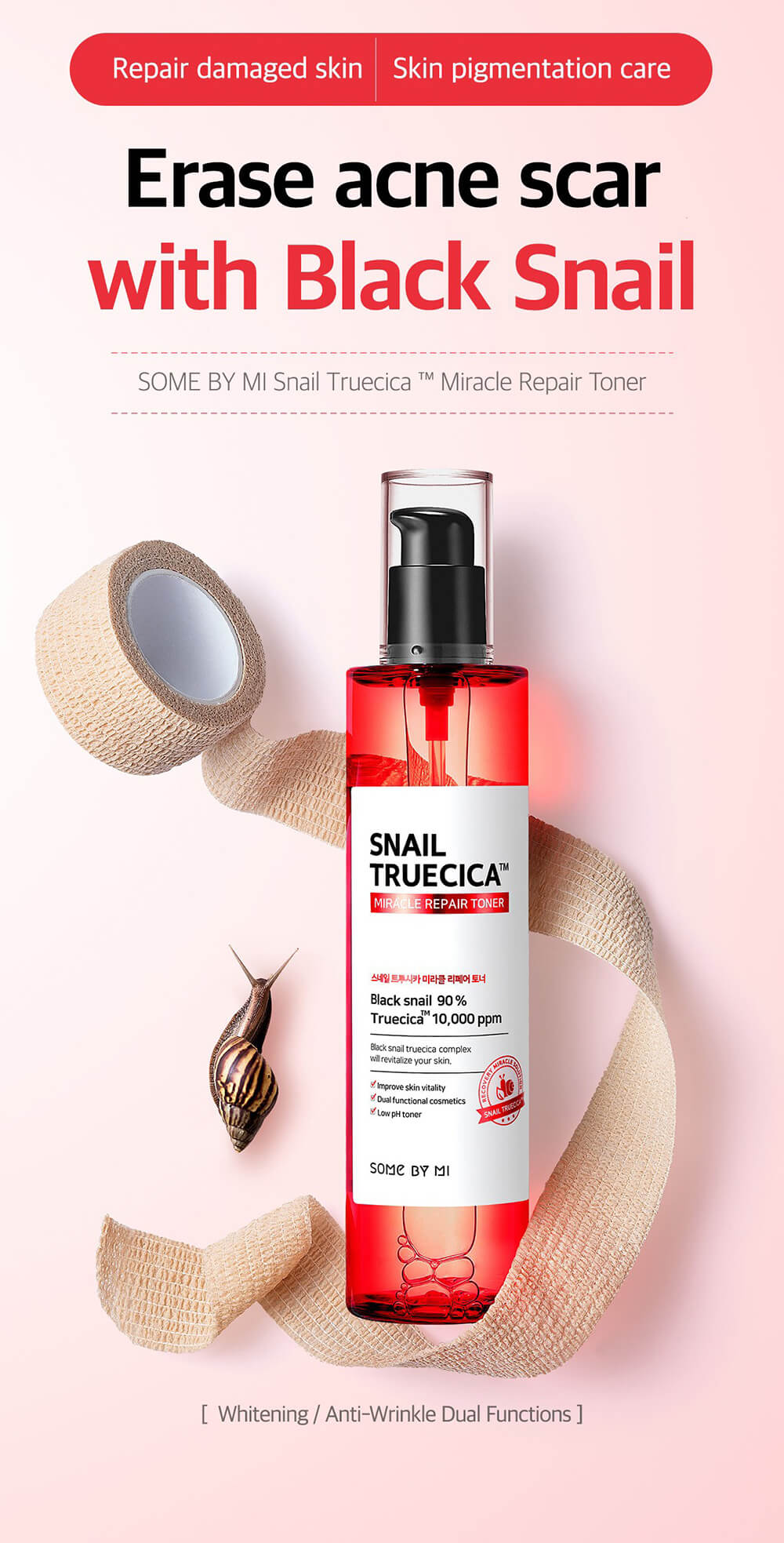 Một trong những điều đặc biệt khiến Snail Truecica Miracle Repair Toner là dòng toner đẳng cấp nhất của thương hiệu Some By Mi – mỹ phẩm Hàn Quốc là nhờ thành phần tinh chất ốc sên đen. Một chất rất cần thiết và thực sự tốt cho sự phát triển của làn da. Snail Truecica Toner là sản phẩm rất được các tín đồ làm đẹp lẫn các cô gái ưa chuộng vì bảng thành phần cực kỳ lành tính với tiêu chí không paraben, không cồn, phù hợp tất cả loại da ngay cả da mẫn cảm nhất.