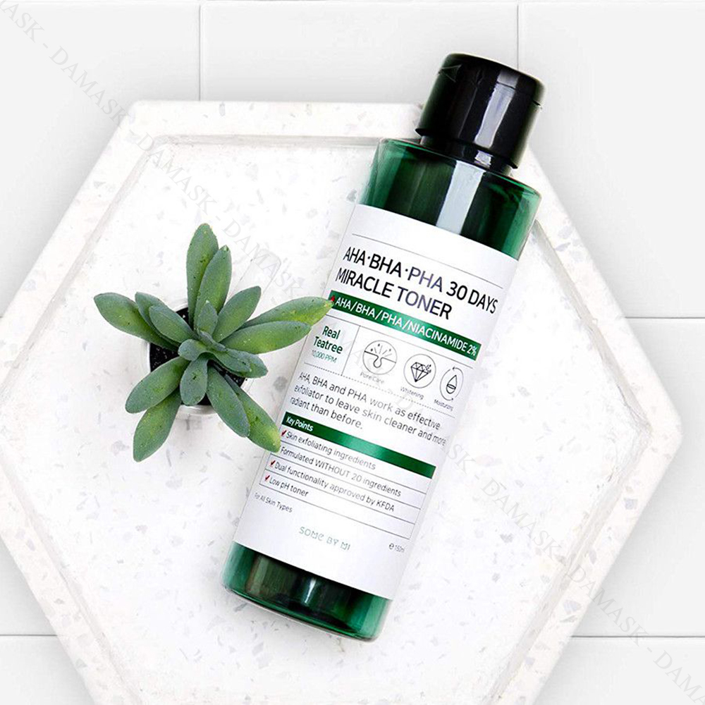 Toner trị mụn Some By Mi AHA BHA PHA 30 Days Miracle có chứa đến 10,000ppm hàm lượng tràm trà tinh khiết nhất được chiết xuất từ thiên nhiên, giúp hỗ trợ điều trị hiệu quả các vấn đề của da mụn, nhạy cảm.
