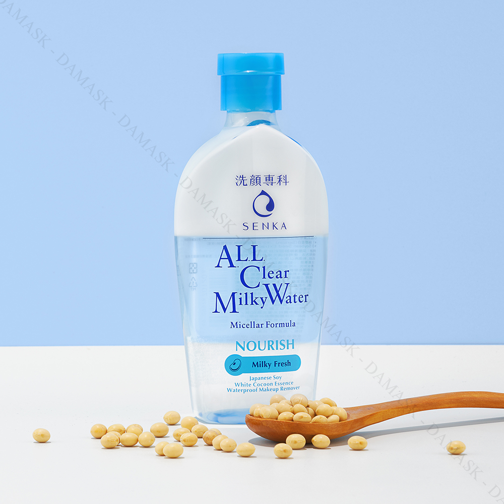 Nước Sữa Tẩy Trang Senka All Clear Milky Water Nourish Hai Lớp 230ml giúp làm sạch sâu lớp trang điểm lâu trôi, tế bào da chết, bụi bẩn, bã nhờn, dầu thừa bên trong lỗ chân lông mà không để lại cảm giác nhờn rít hay gây khô da.