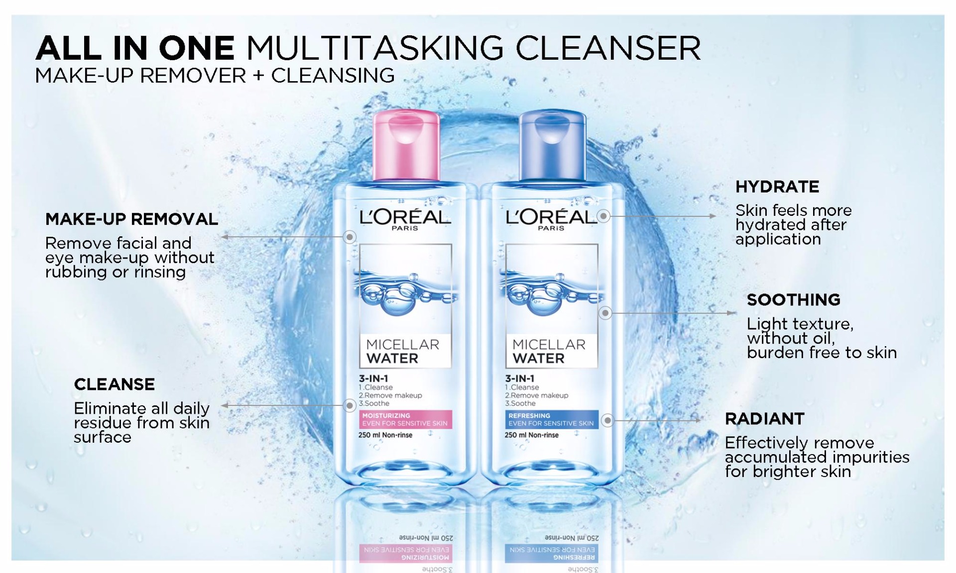 Hướng dẫn sử dụng Nước Tẩy Trang L'oreal 3 In 1 Moisturizing Micellar Water Cleanser:
