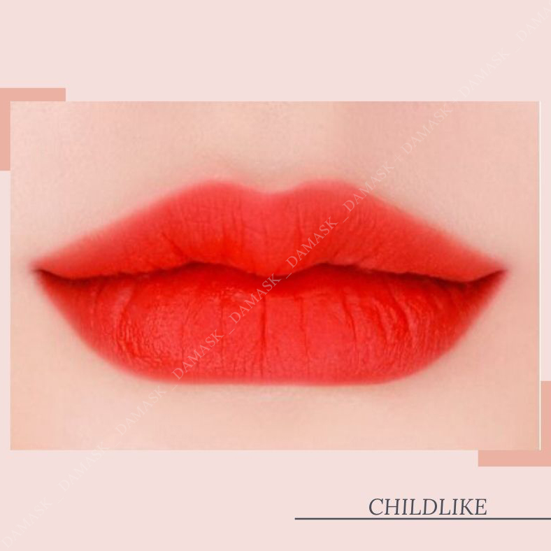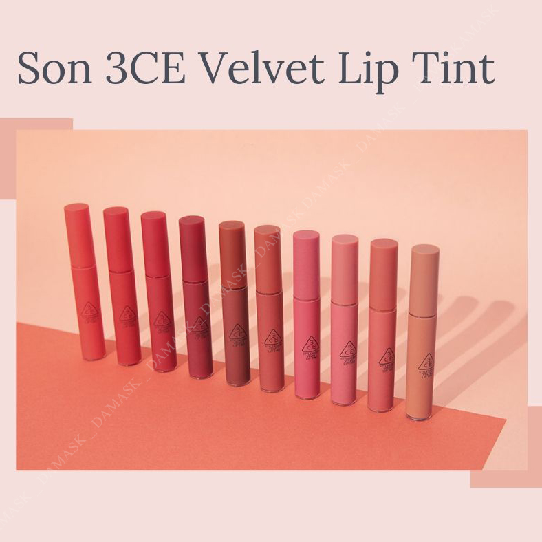 Son 3CE Velvet Lip Tint với 10 màu sắc đủ làm siêu lòng các cô gái của Damask đấy. Thân son dạng ống tròn, thon nhỏ và dài, dung lượng 4g. Nắp son vặn, vừa khít với thân son. 3CE Velvet Lip Tint mang đến cho người dùng một cảm giác đẹp sang trọng và lộng lẫy nhưng cũng không kém phần dễ thương và cá tính. Có một điều đặc biệt là vỏ son có màu hoàn toàn trùng với màu son, đây là một thiết kế hết sức tinh tế, ấn tượng và thú vị đến từ một hãng cao cấp như 3CE.