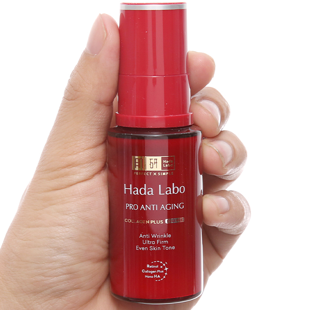 Serum Dưỡng Da Chống Lão Hóa Hada Labo Anti Aging Collagen Plus Essence nằm trong dòng sản phẩm Hada Labo Pro Anti-Aging, với sự kết hợp các thành phần ngăn ngừa lão hóa chuyên biệt Collagen Plus, Retinol và Super Hyaluronic Acid, giúp cải thiện các dấu hiệu lão hóa da, làm mờ nếp nhăn, hỗ trợ phục hồi làn da kém săn chắc. Ngoài ra, sản phẩm còn thúc đẩy quá trình loại bỏ tế bào chết, tăng cường tái tạo Collagen và Elastin tự nhiên, đồng thời ức chế sự hình thành sắc tố Melanin, dưỡng sáng da hiệu quả.