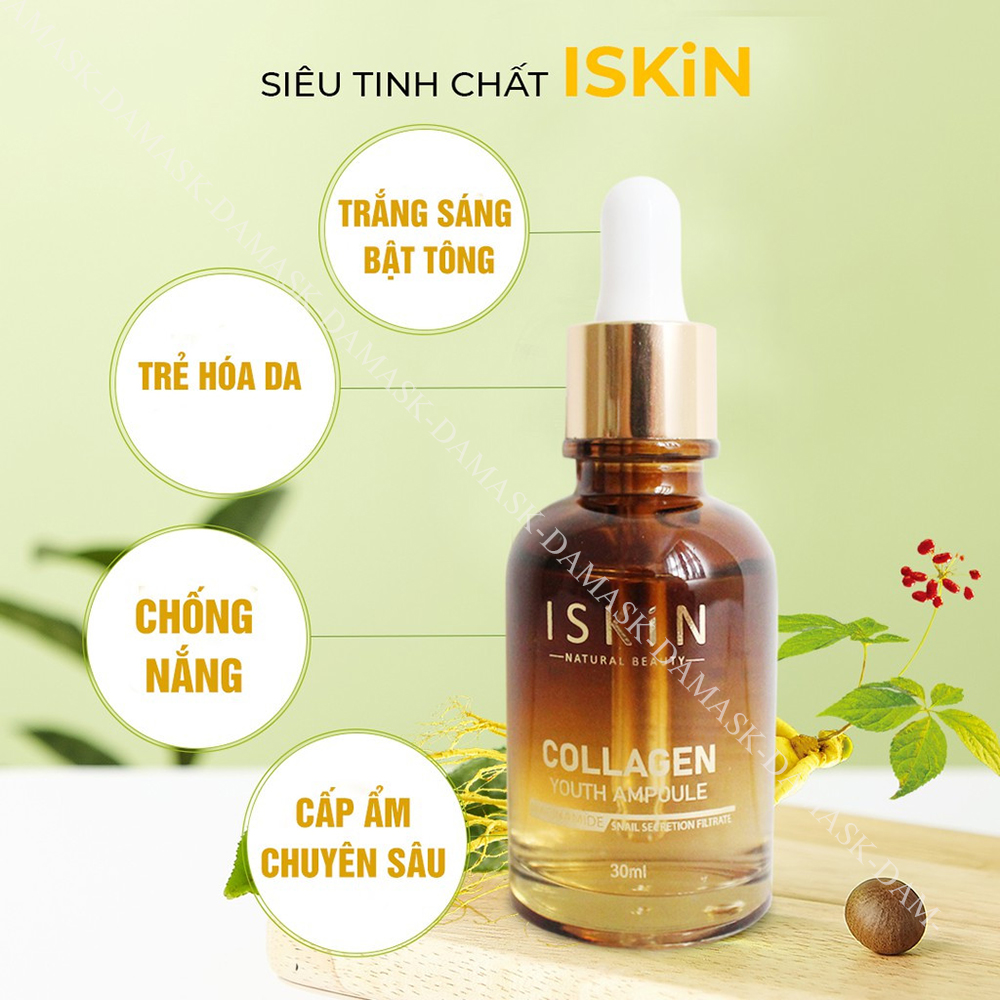 Tinh chất dưỡng trắng tốt nhất Niacinamide giúp dưỡng trắng và đào thải da sạm,tàn nhang, xỉn màu, cho da tươi sáng và hồng hào, dùng dưỡng hàng ngày kích thích quá trình tái tạo da, cung cấp độ ẩm cần thiết nuôi dưỡng làn da sáng mịn, loại bỏ tế bào chết xỉn màu, giúp da khỏe mạnh, tăng cường sự đàn hồi. Siêu tinh chất trẻ hóa và dưỡng trắng ISKIN với thành phần chính là Niacinamide và hoa nhung tuyết sẽ tác động sâu vào da, giúp làn da của bạn sáng mịn không tì vết chỉ sau 2 – 3 tuần sử dụng.