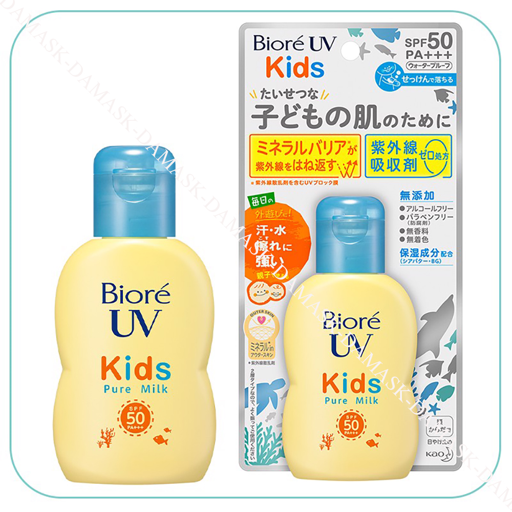 Sữa Chống Nắng Dịu Nhẹ Cho Trẻ Em Bioré UV Kids Pure Milk SPF50/PA+++ là kem chống nắng vật lý với chỉ số chống nắng vượt trội SPF50+/ PA+++ giúp đảm bảo an toàn cho làn da mỏng manh trẻ em, cho bé thoải mái tận hưởng các hoạt động vui chơi ngoài trời.
