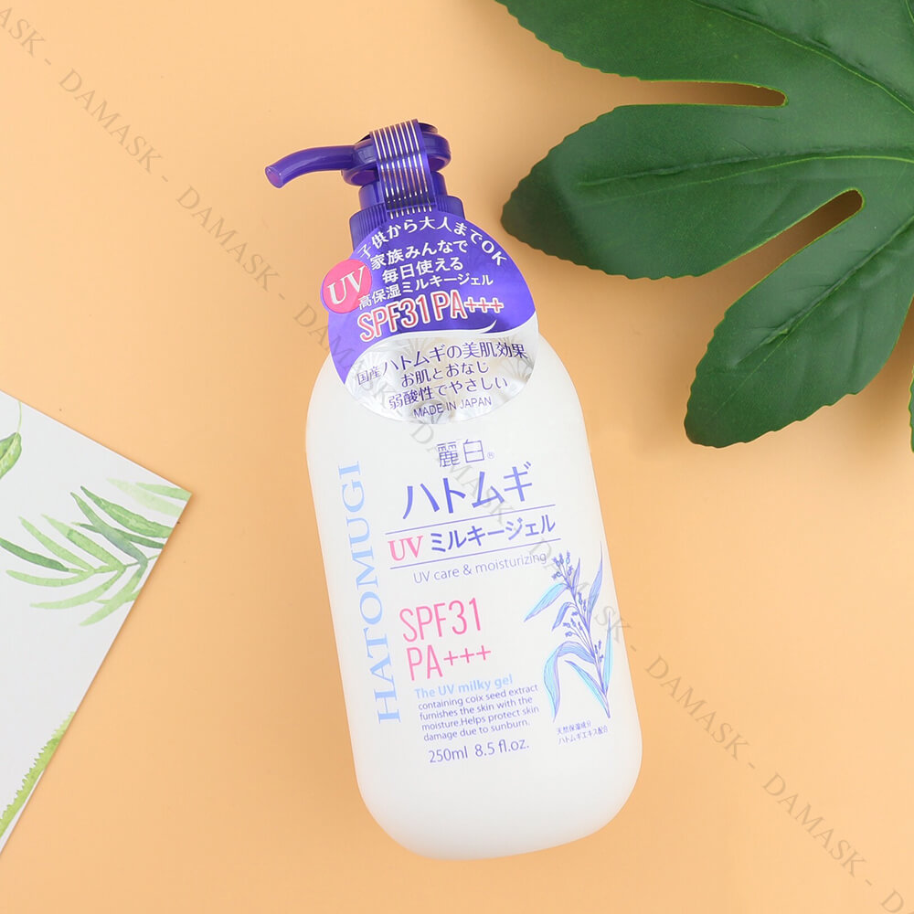 + Ngoài ra, sữa dưỡng thể Hatomugi còn chứa thành phần chống nắng SPF 31+++ (chỉ số chống nắng khá cao) giúp bảo vệ da khỏi tác động của tia UV (một trong những nguyên nhân gây thâm nám, sạm da).