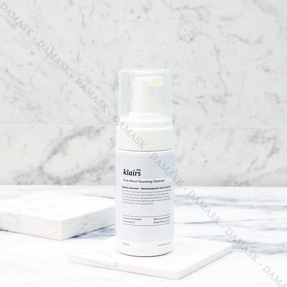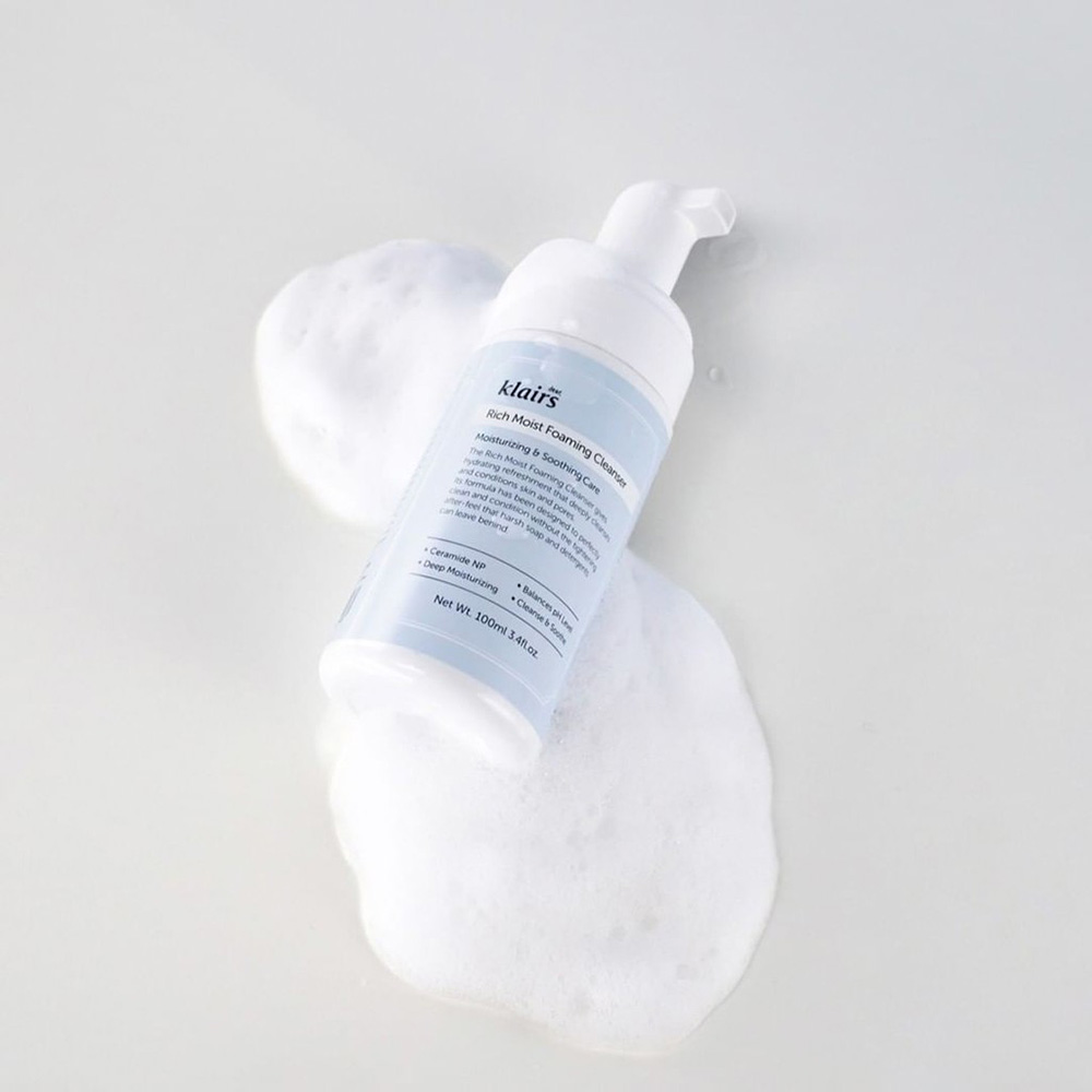 Sữa Rửa Mặt Tạo Bọt Dưỡng Ẩm, Dịu Nhẹ Klairs Rich Moist Foaming Cleanser là sữa rửa mặt với công thức chứa các thành phần lành tính như tràm trà, rau sam, lô hội và hoạt chất tẩy tế bào chết dịu nhẹ cho da từ đu đủ phù hợp với làn da khô, nhạy cảm, độ pH 6.0 tính axit yếu giúp duy trì độ ẩm cho làn da sau khi rửa mặt thuộc thương hiệu Klairs đến từ Hàn Quốc