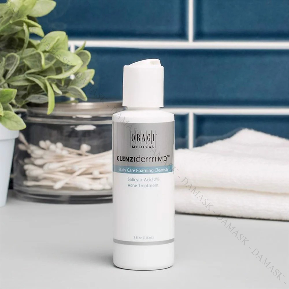 Sữa rửa mặt giảm mụn Obagi CLENZIderm M.D Daily Care Foaming Cleanser với khả năng tạo bọt chứa các phân tử nước siêu nhỏ có thể thấm sâu vào chân lông đang tắt nghẽn, phá vỡ cấu trúc liên kết giữa các chất bẩn và cuốn chúng ra ngoài. Nhờ thế, những chất bẩn như bụi, cặn, chất trang điểm và nhờn tồn đọng trong chân lông nhanh chóng được làm sạch, trả lại chân lông thông thoáng cho làn da sạch sẽ, mịn màng.