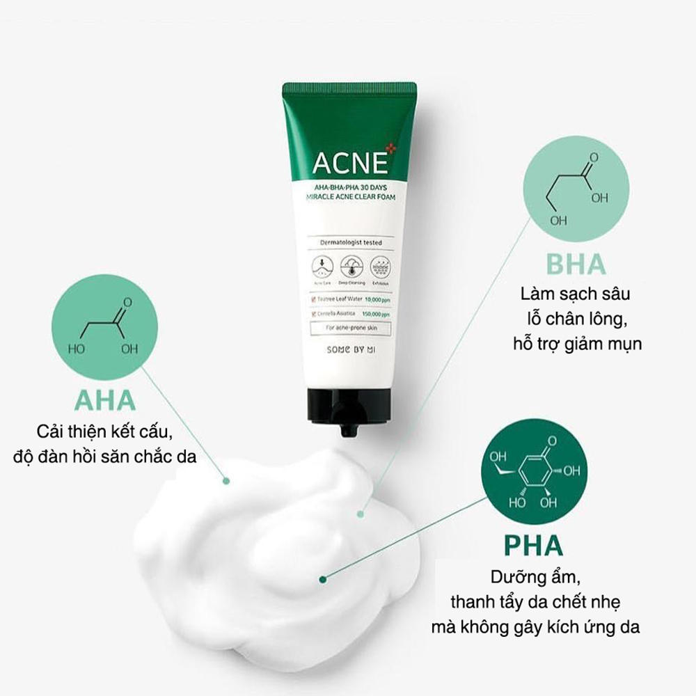 Với công nghệ tiên tiến của ngành mỹ phẩm Hàn Quốc, Sữa rửa mặt trị mụn Some By Mi AHA-BHA-PHA có thành phần là sự kết hợp hoàn hảo của những nguyên liệu chiết xuất từ thiên nhiên và những tinh chất dưỡng da như AHA, BHA.... Chúng ta có thể kể ra một số thành phần và công dụng như: