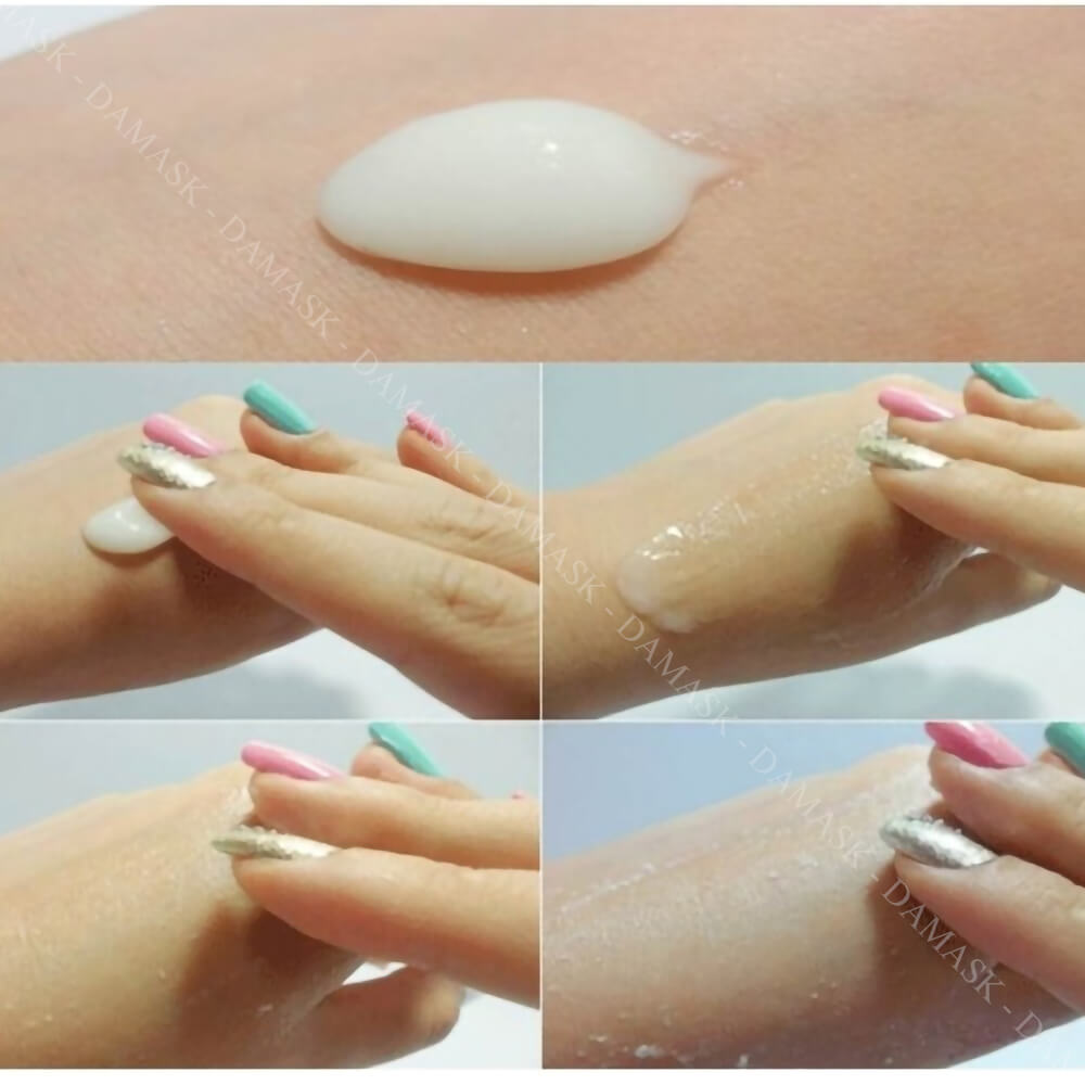 Bước 4: Thêm vài giọt nước lên lòng bàn tay, xoa hai lòng bàn tay lên mặt và chuyển động theo các đường tròn to trong 20 giây. Tiếp tục làm ướt tay và lặp lại động tác này cho đến khi các hạt trong hỗn hợp tan mịn. Rửa lại mặt bằng nước ấm, sau đó dùng sữa rửa mặt… và kết thúc bằng nước mát để khóa các lỗ chân lông.