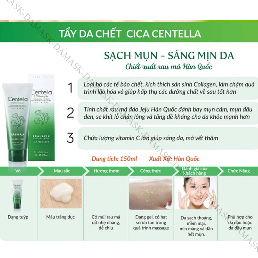 Tẩy da chết Cica Centella với chiết xuất rau má có độ tinh khiết cao đến từ đảo Jeju giúp làm sạch tế bào chết, thanh lọc kháng khuẩn cho da, đặc biệt sp chứa thành phần BHA tự nhiên giúp đẩy mụn lên bề mặt da, giúp da nhanh chóng giải tỏa căng thẳng với mụn ẩn và vi khuẩn,hấp thụ dưỡng chất mà bạn dưỡng sau đó tốt hơn. Da sẽ nhanh chóng phục hồi và lấy lại vẻ rạng rỡ, căng khỏe chỉ trong một thời gian ngắn.