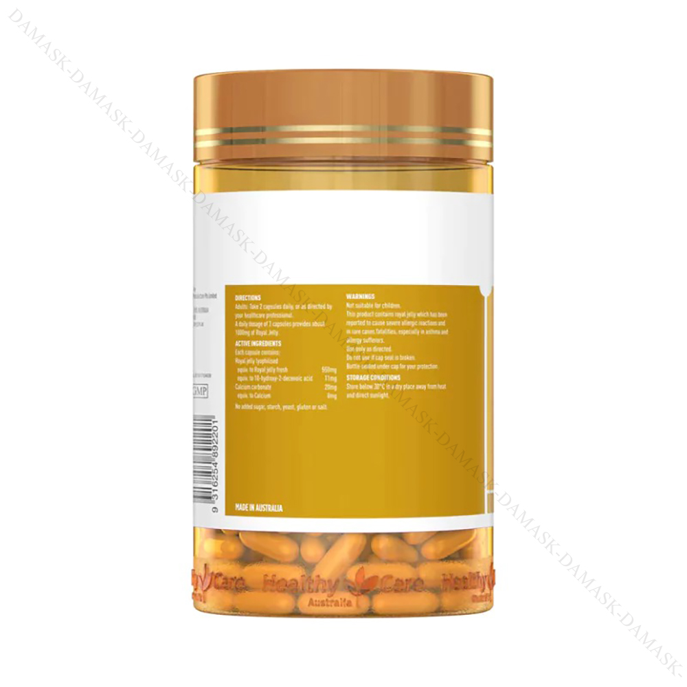 Đôi nét về sản phẩm Viên uống sữa ong chúa cao cấp làm đẹp da Royal Jelly Healthy CareViên uống sữa ong chúa cao cấp làm đẹp da Royal Jelly Healthy Care là một loại thực phẩm chức năng chứa sữa ong chúa và các thành phần khác giúp bổ sung dinh dưỡng, tăng cường sức khỏe và làm đẹp da. Sữa ong chúa là một loại sản phẩm được chiết xuất từ mật ong và tuyến sữa của ong chúa. Sữa ong chúa chứa nhiều loại vitamin, khoáng chất, protein và axit amin có lợi, giúp cải thiện sức khỏe, làm chậm quá trình lão hóa và tăng cường sức đề kháng cho cơ thể.