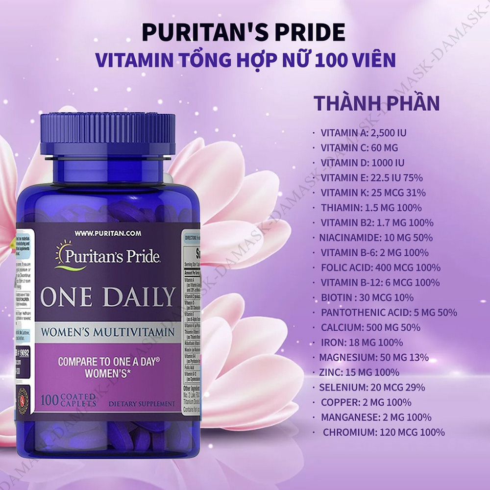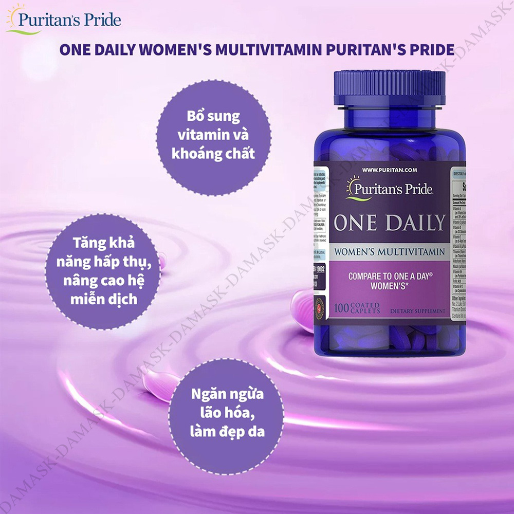 One Daily Women’s Multivitamin – Viên uống tổng hợp nhiều loại vitamin cần thiết cho phụ nữ mà thực phẩm hàng ngày không thể đáp ứng đủ, là sản phẩm cải tiến mới nhất của thương hiệu Puritan’s Pride Mỹ sản xuất. Sản phẩm giúp bổ sung vitamin cần thiết, tăng cường sức đề kháng, hỗ trợ hệ xương khớp, hệ thống tim mạch, tăng cường miễn dịch, bảo vệ làn da, cung cấp dinh dưỡng trong giai đoạn tiền mãn kinh và mãn kinh.