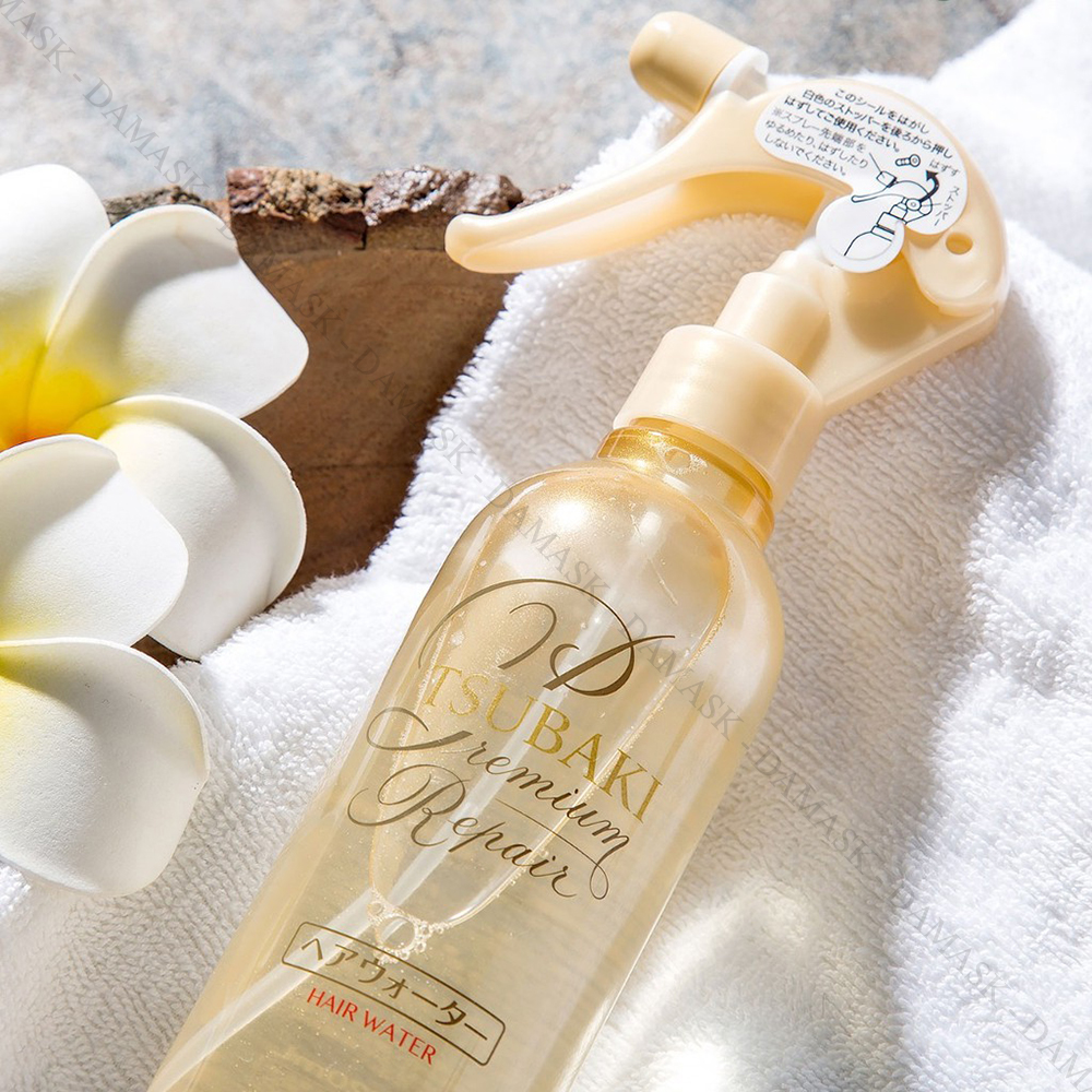 Xịt Dưỡng Tóc Phục Hồi Hư Tổn, Ngăn Rụng Tóc Tsubaki Premium Repair Hair Water là sản phẩm xịt dưỡng tóc thuộc thương hiệu Tsubaki, giúp giữ cho mái tóc khỏe đẹp với chức năng khóa ẩm và ngăn chặn tia UV. Bảo vệ mái tóc khỏi khô, xơ dưới nhiệt độ của máy sấy tóc. Sản phẩm không chứa chất bảo quản, an toàn cho da đầu và sức khỏe.